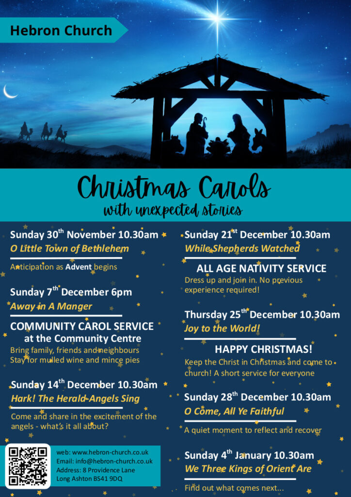 We are beginning to assemble a music group of singers and instrumentalists to lead us in our favourite carols. Would you like to join in? No experience needed. Likely 2 or 3 rehearsals and a lot of fun on the day. Interested? Email admin@hebron-church.co.uk to find out more. Either way – do save the date and come for carols on the 7th December.