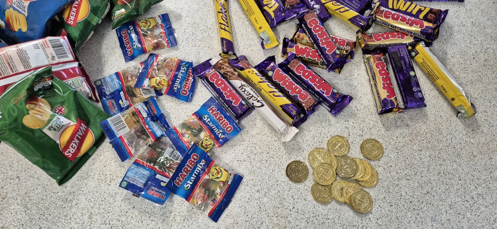 Each token allows them to buy one small item, e.g. a fun-size chocolate bar or bag of sweets, or a packet of crisps.
